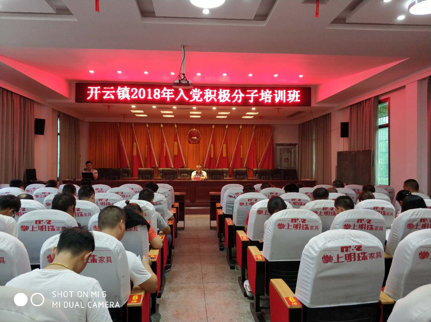 6 月6日,在开云镇党委的组织下,开云镇2018年度入党积极分子培训班在二楼会议室开班了,共有由各基层党组织推荐的43名入党积极分子参加培训班,开班仪式由组织委员刘文柱主持,党委副书记、镇长陈一德,党委副书记李国珍、政协联络工委主任黄文星、纪委书记彭宁衡、党委委员王红永参加,镇长陈一德作了重要讲话,对参训人员提出了三点要求:1、要端正入党动机,扣好第一颗扣子,2、要严格遵守培训纪律,保证培训效果,3、要珍惜培训机会,努力做到在思想上入党,并预祝他们学有所获、学有所成,争取早日加入到党的队伍里面来。镇组织委员刘文柱就培训期间需要注意的事项进行了安排,并对接下来三天的课程和结业考试进行了安排。