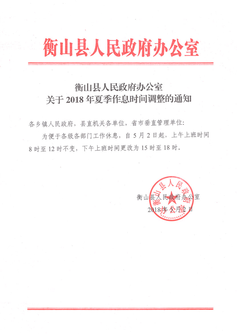 衡山县人民政府办公室关于2018年夏季作息时间调整的通知