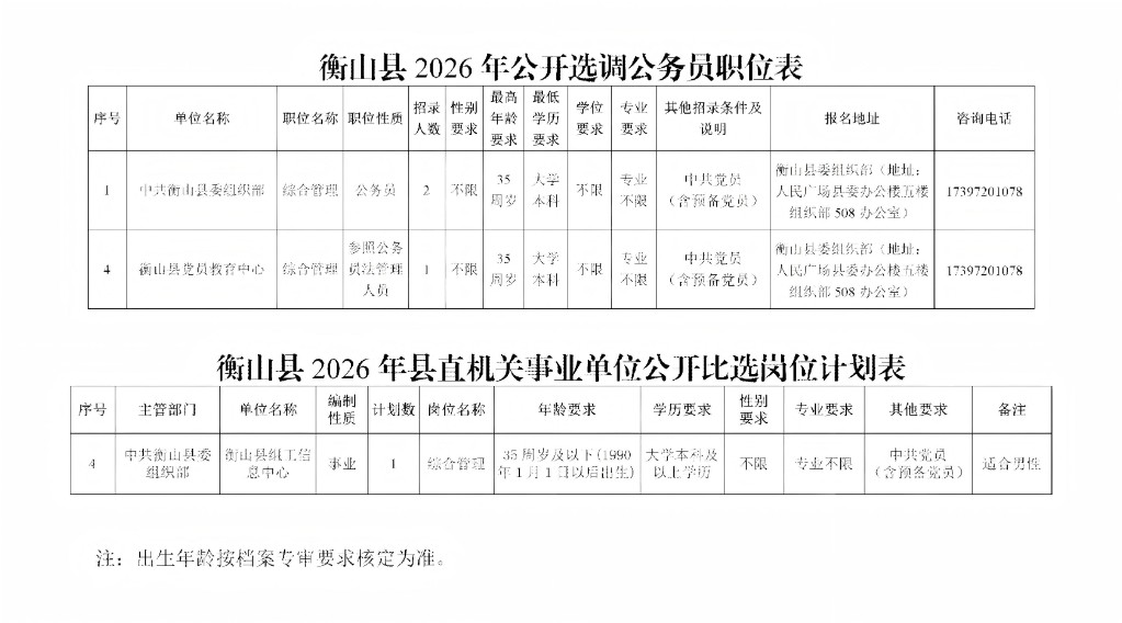 本次县委组织部共设3个岗位。其中,公开选调公务员3人、县直机关事业单位公开比选1人。具体岗位见下方表格。
