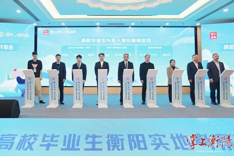 会上,副市长谢宏介绍了衡阳市促进高校毕业生就业创业有关情况。南华大学党委委员、副校长周青芝,衡阳泰豪通信车辆有限公司副总经理冯文明作为用人单位代表,来自博文高级中学、特变电工衡阳变压器有限公司、中国电信衡东分公司、南华大学附一医院的人才代表,先后作交流分享。部分高校毕业生代表与用人单位当面完成就业意向签约,298名高校毕业生现场通过手机终端扫码完成线上签约。