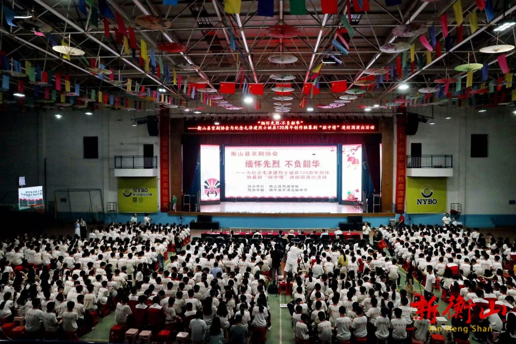 9月28日晚,由衡山县京剧协会创作,纪念毛泽建烈士诞辰120周年的独幕京剧《狱中情》,在观湘学校体育馆进行演出,为全校师生带来了一场震撼心灵的红色艺术盛宴。县领导谷蓉、陈燕春参加。