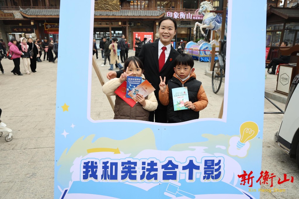 活动现场还特别设置“我与宪法合个影”互动打卡环节,吸引众多群众驻足参与,在轻松互动中加深了对宪法的认识与理解。现场还穿插了法律知识有奖问答,通过寓教于乐的方式,进一步增强了群众的法治意识,营造了全民尊法学法守法用法的良好氛围。