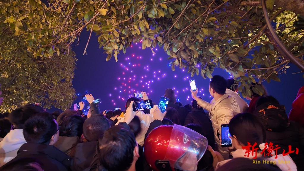 “我看到公众号上面说衡山渡有无人机表演,就跟家人一起过来看看,确实很精彩,好久没见到这么多人了,很有过年氛围!”衡阳游客刘春兰惊叹道。