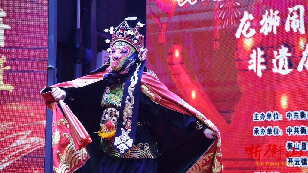 除了流动的舞台,定点演出同样精彩纷呈。衡山县花鼓戏剧团的演员们轮番上阵,不仅带来了气势十足的鼓舞、精妙绝伦的变脸绝活,还有地道腔浓的花鼓小戏,经典旋律一响,唤起几代人的共同记忆,将佳节喜庆氛围推向高潮。