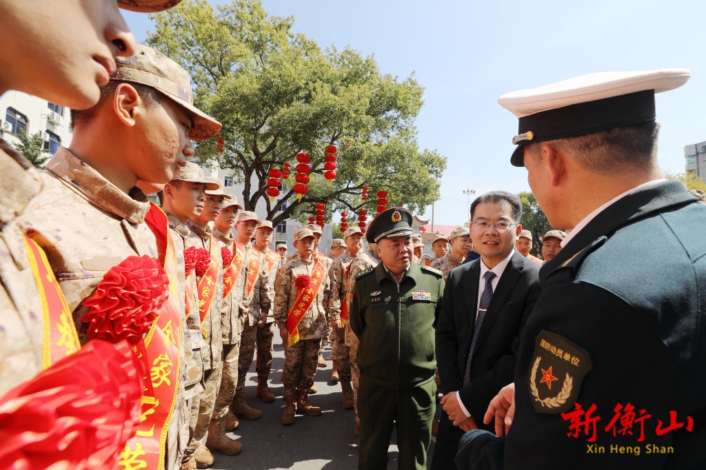 县领导石斌欣、王志强共同欢送新兵出征入伍。(记者:旷雨澄 蒋鹏)