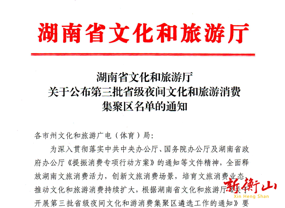 近日,湖南省文化和旅游厅公示第三批省级夜间文化和旅游消费集聚区名单,衡山渡榜上有名。