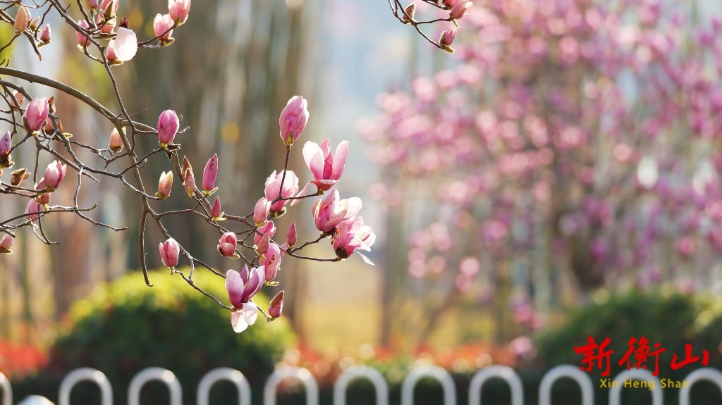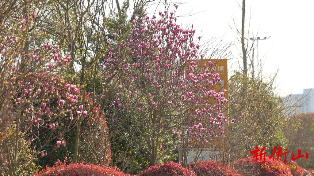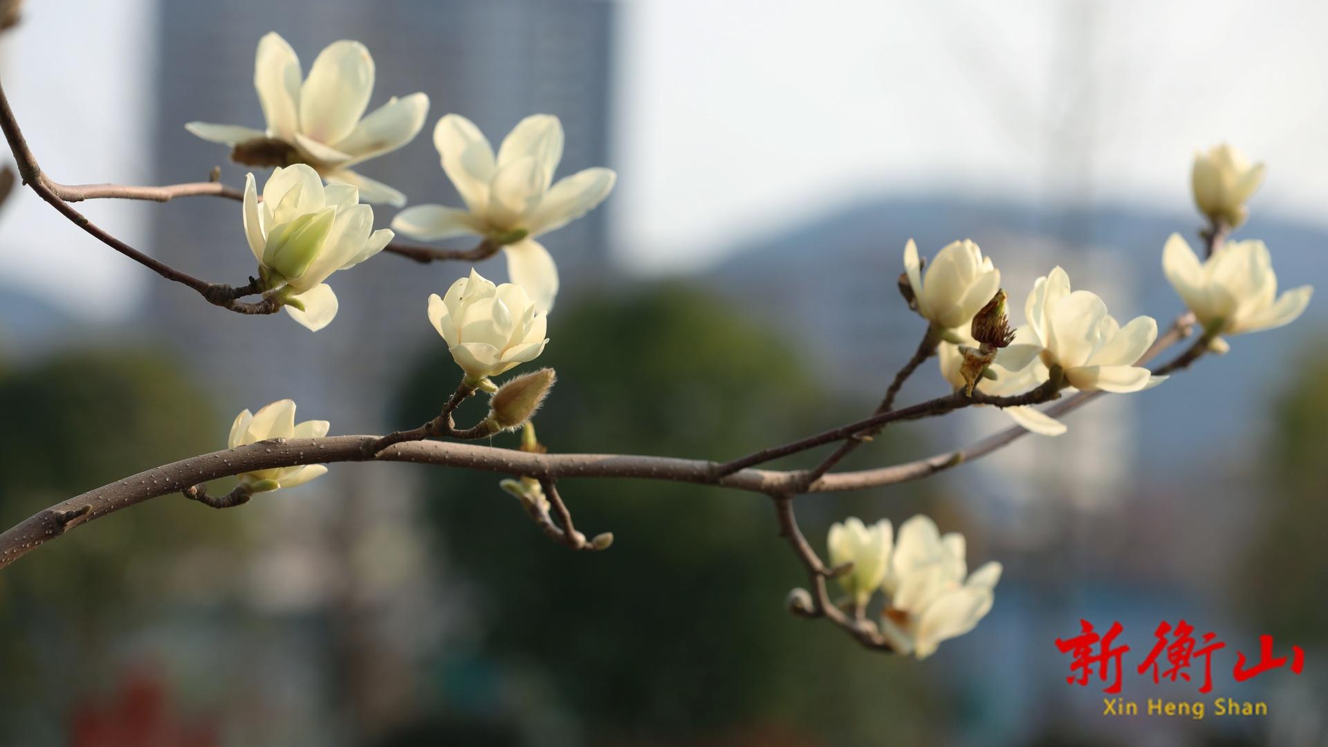 衡山县城主干道附近的玉兰花迎春绽放