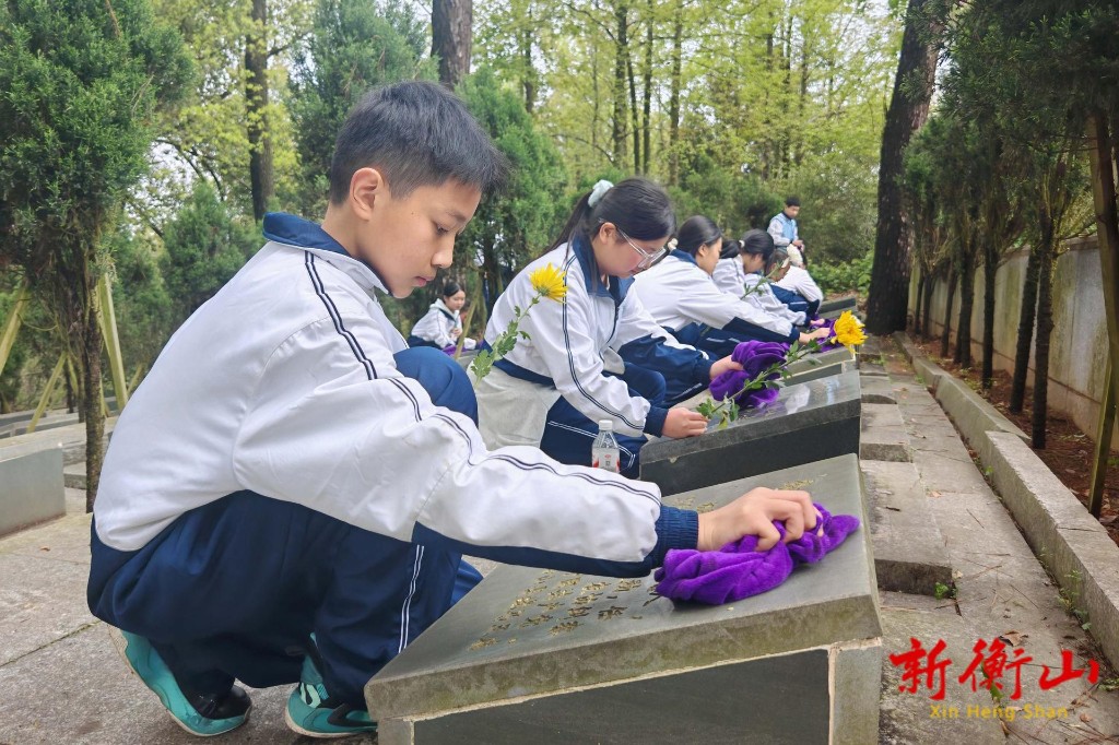 “今天徒步来到烈士纪念碑,参加祭扫活动,我的内心特别激动也特别沉重。看着庄严的纪念碑,擦拭烈士的墓碑,我深深感受到,我们现在安稳幸福的学习生活,都是革命先烈用鲜血和生命换来的。作为新时代的初中生,我们一定要铭记历史,缅怀先烈,好好学习,奋发向上,长大后为祖国的建设贡献自己的一份力量,不辜负先烈们的付出。”衡山县文召中学学生胡逸涵表示。