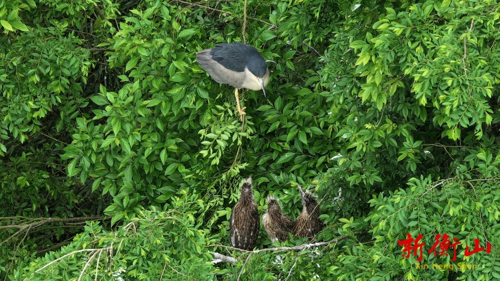 据了解,夜鹭孵化周期约20天,白鹭孵化周期在25天左右,因孵化时间不同,雏鸟分批破壳降生,让湿地“幼儿园”时刻充满新生活力。尤为特别的是,白鹭、夜鹭、牛背鹭三类鹭鸟习性不同,却在此和谐共生、比邻而居:白鹭与牛背鹭白天外出觅食,夜鹭则昼伏夜出、夜间捕食,作息互补、互不干扰,构成了趣味十足的湿地鸟类共生图景。