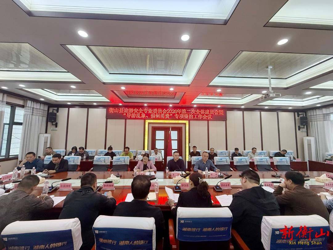 4月28日,衡山县旅游安全专业委员会2026年第二次全体成员会暨“导游乱象、强制消费”专项整治工作会议召开。会议传达了近期安全生产及省、市相关专项整治会议精神,分析了当前旅游市场安全形势,并部署了“导游乱象、强制消费”专项整治行动。副县长蒋平参加会议并讲话。