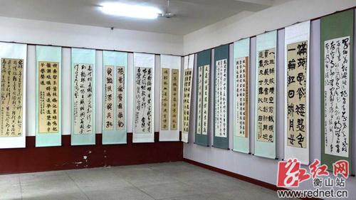 据了解,此次参展的79幅书画作品由衡山县四中师生、衡山县诗词楹联协会会员联合创作,包括篆书、楷书、草书等。