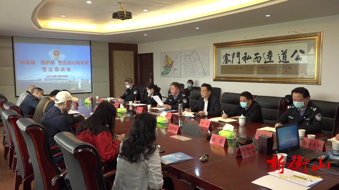 在高新技术产业园区,县公安部门会同联食品、恒岳重钢、恒信新材、金昌生物技术等7家企业代表在高新区管委会召开“你发展·我护航,警企连心向未来”警企恳谈会。会上7家企业代表敞开心扉、畅所欲言,对公安机关认真听取企业心声、持续优化营商环境给予了一致好评,并结合企业自身发展和衡山实际情况,就交通安全、扫黑除恶、打击非法集资违法犯罪等方面提出了具体意见和建议。相关警种负责人分别就有关问题进行了解答并作表态。
