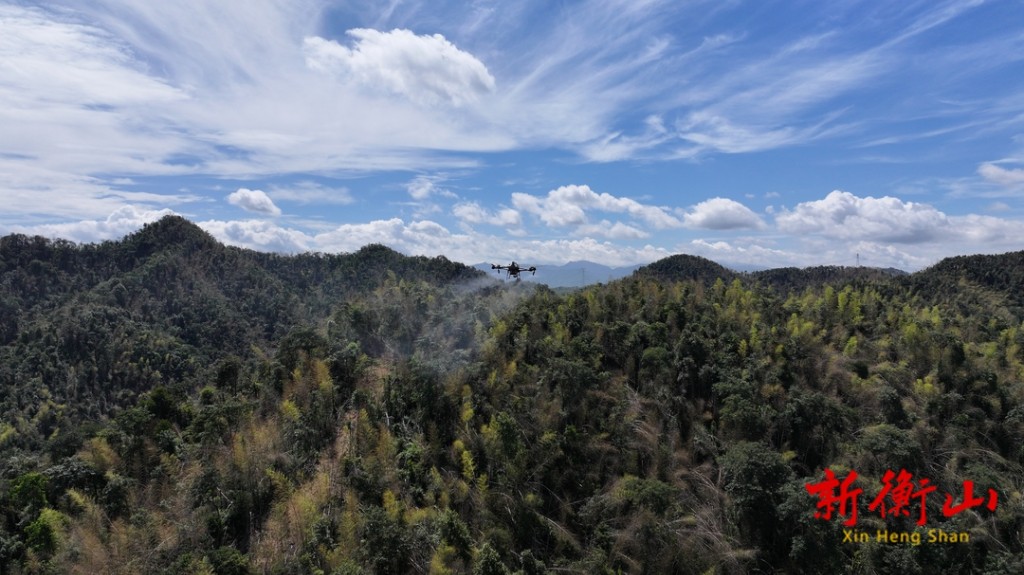“7月以来,受持续高热天气影响,黄脊竹蝗进入生长及危害高发期,我县东湖、新桥、岭坡等乡镇共5万余亩竹林发生竹蝗虫害,成片的竹林出现泛黄现象。”据衡山县林业局总工程师彭皓介绍,为有效应对竹蝗入侵,衡山县林业局迅速组织专业飞防技术队伍,用无人机喷洒生物农药的方式,对竹蝗发生地进行飞防作业。