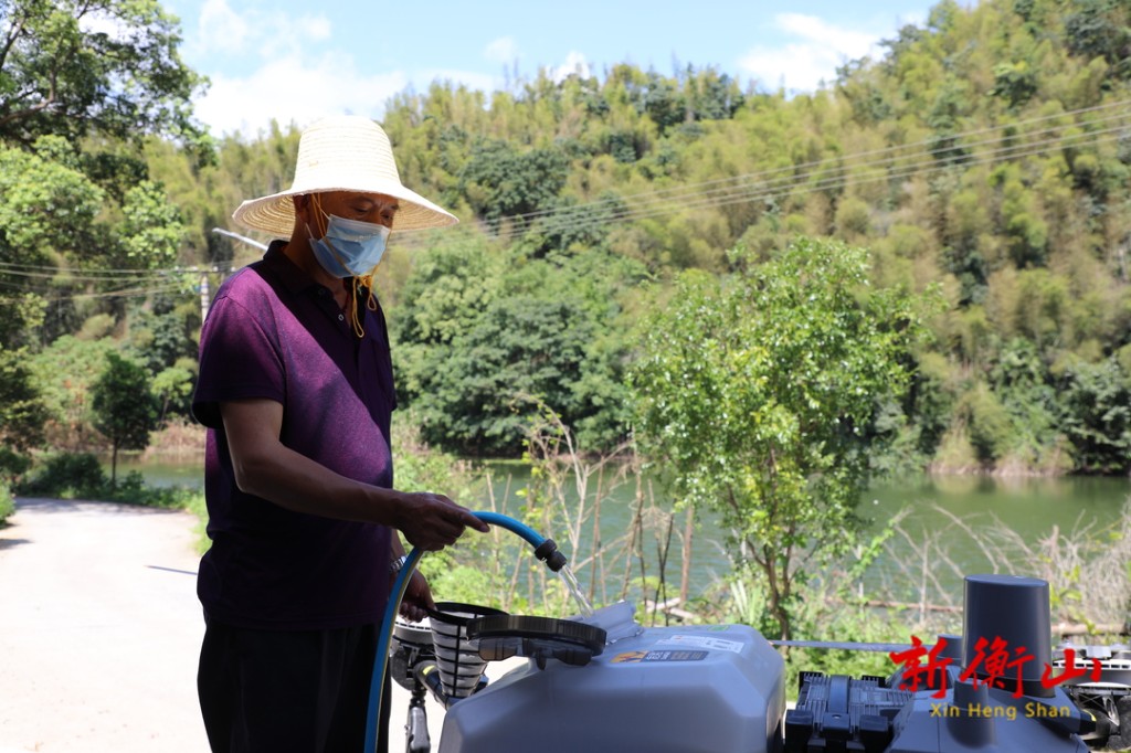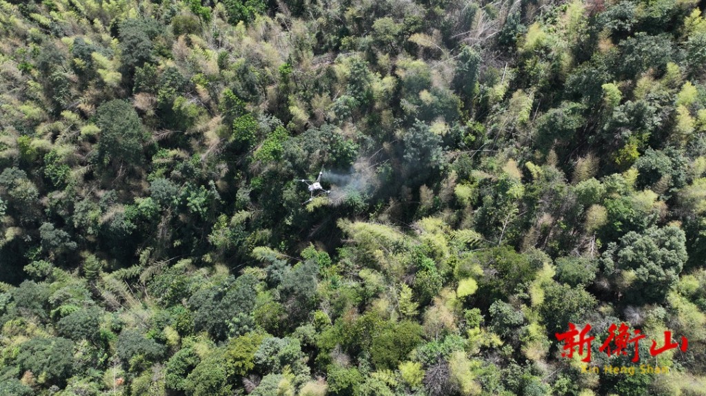 8月1日,在衡山县新桥镇新桥村的无人机防治现场,只见来自湖南湘华白蚁虫害防制工程有限公司的技术人员们,分工配合,迅速有序地往大型植保无人机里灌入超出五十公斤的生物药剂。随后,在技术员的遥控指挥下,无人机在竹林上空来回穿梭,在蝗虫重灾区域进行全覆盖喷洒作业,生物药剂呈雾状喷洒而出,均匀、准确地喷洒在目标区域,整个过程快捷高效。