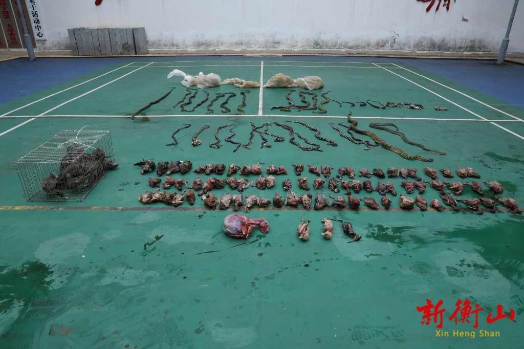 “现场查获活体野生动物包括活体斑鸠20只,活体蛇类17条。活体蛇类有21公斤,包括有大王蛇、乌梢蛇。嫌疑人家中还有大量的死体蛇类和死体鸟类。”衡山县森林公安局民警唐洪告诉记者。