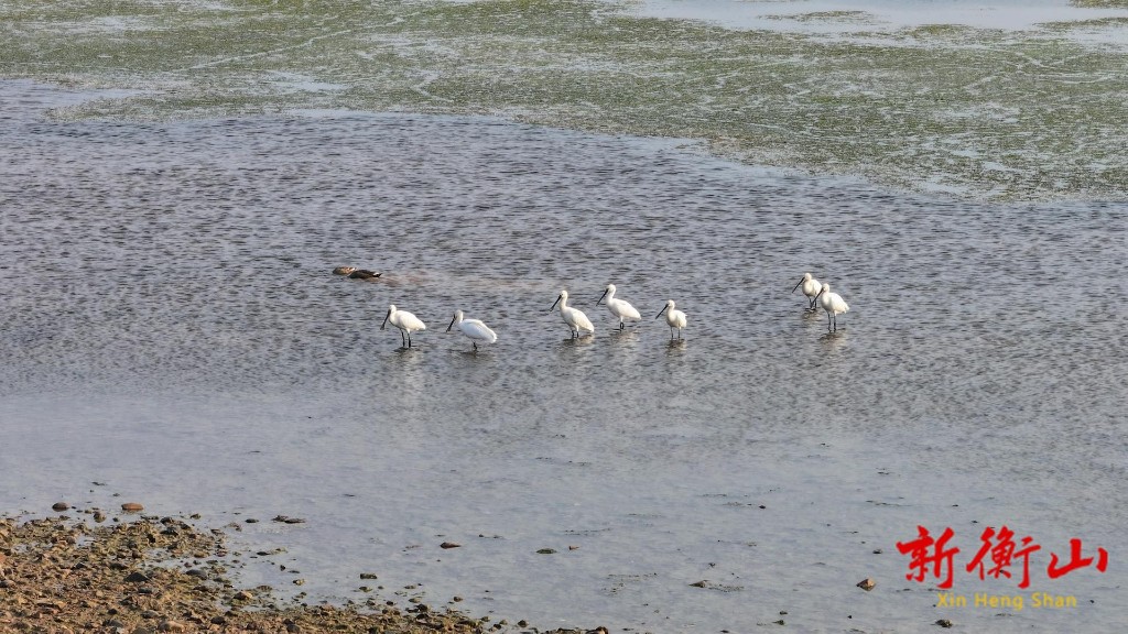 近日,衡山萱洲国家湿地公园接连迎来鸟类“访客团”,其中数十只白琵鹭成群结队,在此驻足栖息,为这片湿地增添了一抹灵动的色彩。