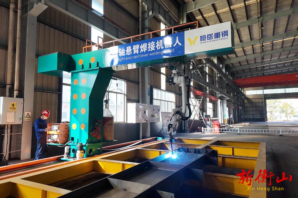 在位于衡山高新区的湖南恒岳重钢钢结构工程有限公司的智能化生产车间里,一条条自动化生产线正高速运转,这些钢材将经过数控切割、精密检测、智能成型等全流程数字化加工,摇身一变成为精密度达0.5毫米以内的风电塔架部件。