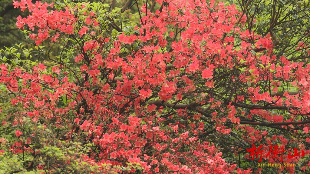 不同于园林中精心修剪的花簇,这里的映山红肆意生长于林间,虬枝盘曲、姿态万千,粉艳、火红的花瓣层层舒展,把整座山峦装点得明艳动人。