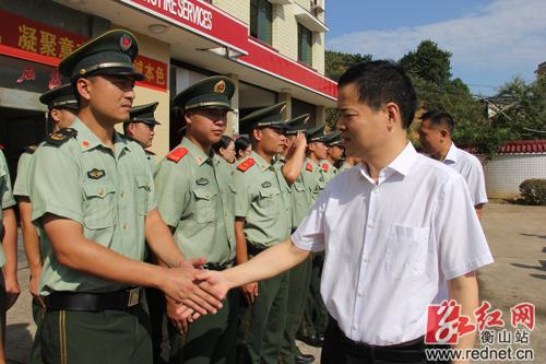 7月30日,县委书记尹培国走访慰问驻衡部队官兵,为他们送去节日祝福。