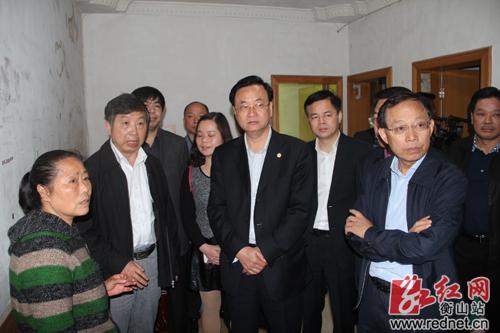 图为,李友志(中)在开云镇甘棠桥社区失独家庭罗祖华、罗玉梅家中走访慰问。