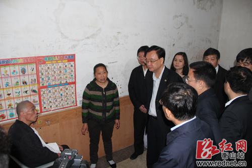 来到开云镇甘棠桥社区失独家庭罗祖华、罗玉梅家中,李友志向罗玉梅老人亲切地询问退休后的家庭生活情况。得知罗玉梅的丈夫罗祖华4年前患帕金森综合症,生活不能自理,且儿子2008年在车祸中遇难,现带着两个孙女生活;看着饱受病痛折磨的罗祖华、且家庭困难的情况,李友志送上了慰问金。他叮嘱在一旁的罗玉梅一定要带好两个孙女,照顾好全家的生活,要相信有党和政府的关心、卫计部门的帮助,日子一定会好起来的。接着,他嘱咐随行的社区干部和部门的同志要多关心照顾这样的失独家庭,多帮助他们解决一些实际困难,让他们感受到社会的温暖。