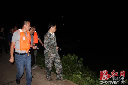 当晚,尹培国巡查长江镇湘江沿线堤岸。
