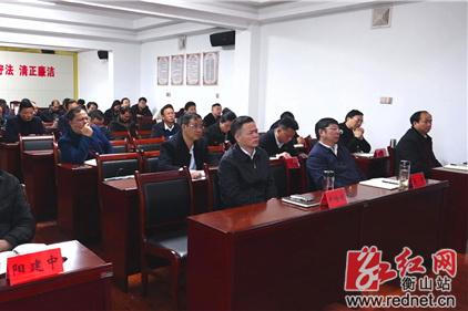 3月5日下午,省第二生态环境保护督察组督察衡阳市“回头看”情况反馈会在衡阳召开,督察组组长杨金鸢宣读《衡阳市省生态环境保护督察“回头看”及砂石行业生态环境保护专项督察报告》,衡阳市委书记、市人大常委会主任邓群策作表态发言,衡阳市委副书记、市长朱健主持反馈会,督察组副组长刘翔出席。会议以视频方式进行,在各县(市)区设置分会场。县委书记尹培国,县委副书记、县长蒋青在衡山县分会场参加会议。