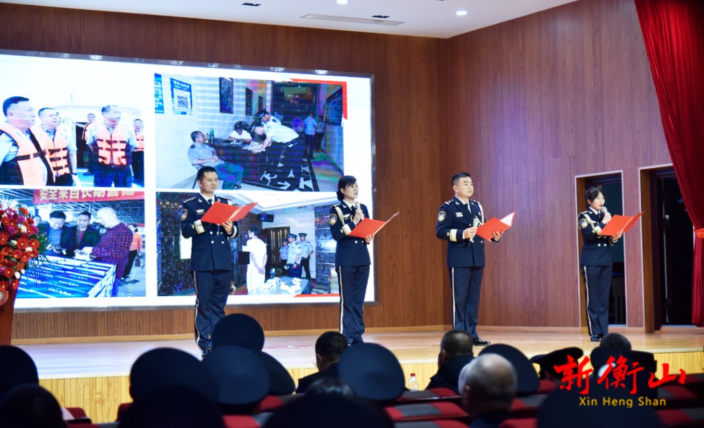 戴新贤强调,当前,衡山正处在加快发展、进位赶超的重要时期,全县公安民警、辅警要始终坚持以习近平新时代中国特色社会主义思想为指导,继续发扬顽强拼搏的工作作风,为保护全县人民生命财产安全、护航经济社会发展贡献力量。要在对党绝对忠诚上展现新作为,坚持政治建警、改革强警、科技兴警、从严治警,发挥公安机关稳定大局的"稳定器"和"压舱石"作用;要在服务发展上展现新作为,全力护航经济发展,持续优化营商环境,努力为项目清障,为企业解忧,为市场保驾;要在平安建设上展现新作为,对涉电诈、涉毒、涉黑恶、涉性侵等领域突出违法犯罪保持高压严打态势,努力建设更高水平的平安衡山。