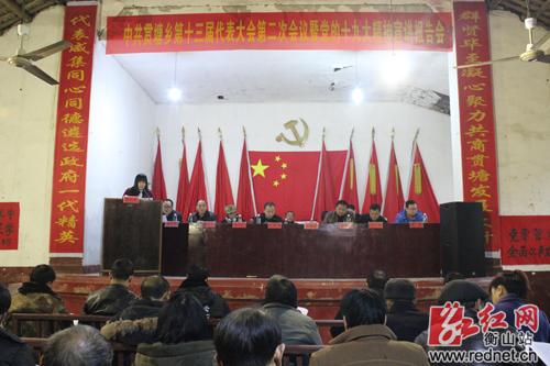 12月15日,中共贯塘乡第十三届代表大会第二次会议在乡政府礼堂召开,该乡党委书记陈燕春作了《凝心聚力抓党建,齐头并进奔小康》的主题报告。她强调,要在全面贯彻落实党的十九大精神基础上,主抓党建扶贫,加快美丽乡村建设,大兴生态农业发展,注重民生实事、项目建设,全力引领全乡各项事业大发展、大繁荣。会上,该乡纪委书记成主方作了党风廉政建设工作报告。全体代表宣读了《我是党代表,我参与精准扶贫》承诺书并签名。大会还对党的十九大精神进行了宣讲。(沈文金)