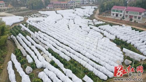 入冬以来,随着气温不断下降,为了避免出现因低温天气给当地沃柑带来大面积的损失,基地负责人早早地便筹备起了防寒防冻的设施建设,采用搭建钢架棚、覆盖薄膜和无纺防寒布等方式,提前为挂果沃柑加布覆盖,最大限度地减少天气对果子的影响,及时护住村民们的“钱袋子”。