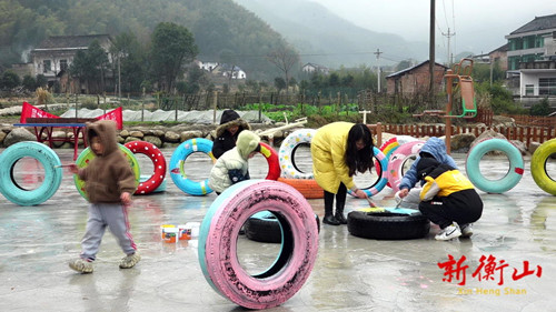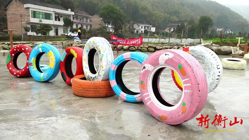 在岭坡乡洄水湾村的“美丽屋场”,孩子们充分发挥才华与创造力,把一个个废弃的轮胎“变废为宝”,画成了一件件艺术作品,为家乡打造出了一条靓丽风景线。“我们这个地方留守儿童比较多,刚好发挥小朋友们天马行空的想象力,既有了陪伴又建设了家。”岭坡乡应急办主任、驻村干部胡蓉说。