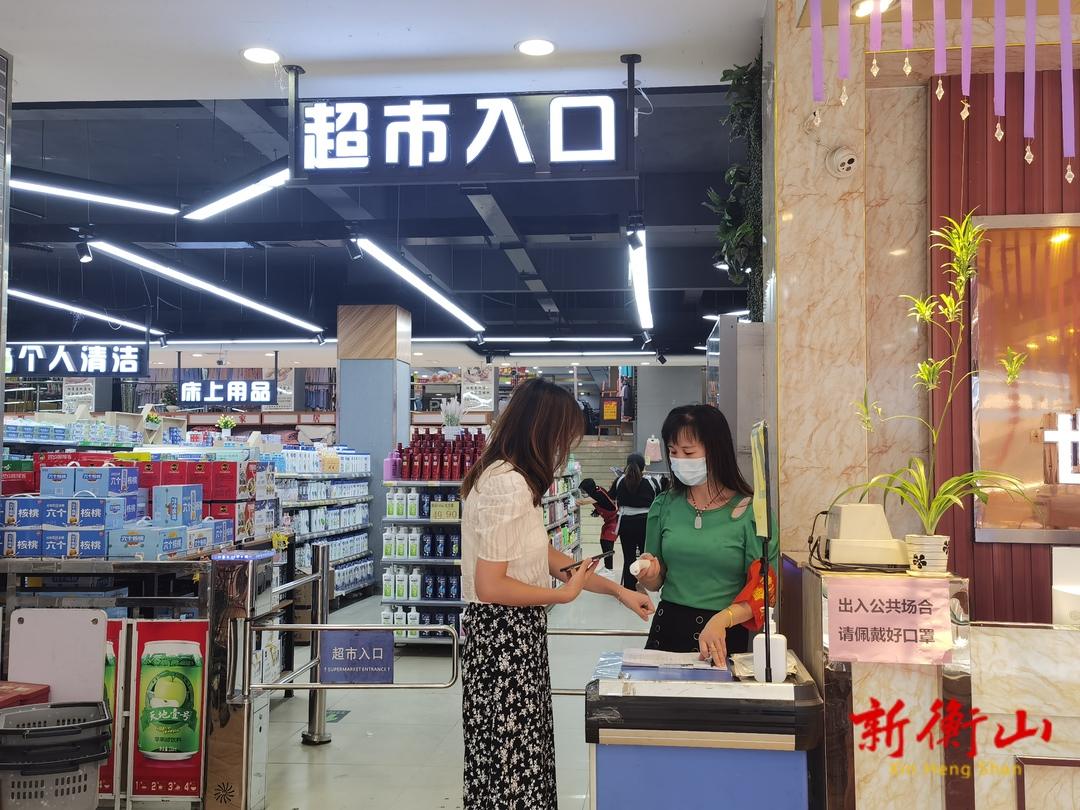 在诚信购物广场,各类商品整齐摆放,种类齐全。当地群众在工作人员的引导下,经过扫码、体温测量等流程,有序进入商场购物,并自觉按照“一米线”的间距排队付款,保持安全距离。“之前因为疫情,我们临时采取了关闭的状态,现在疫情转好一点,我们就恢复正常营业状态了。”白果镇诚信购物广场工作人员张慈娥说。
