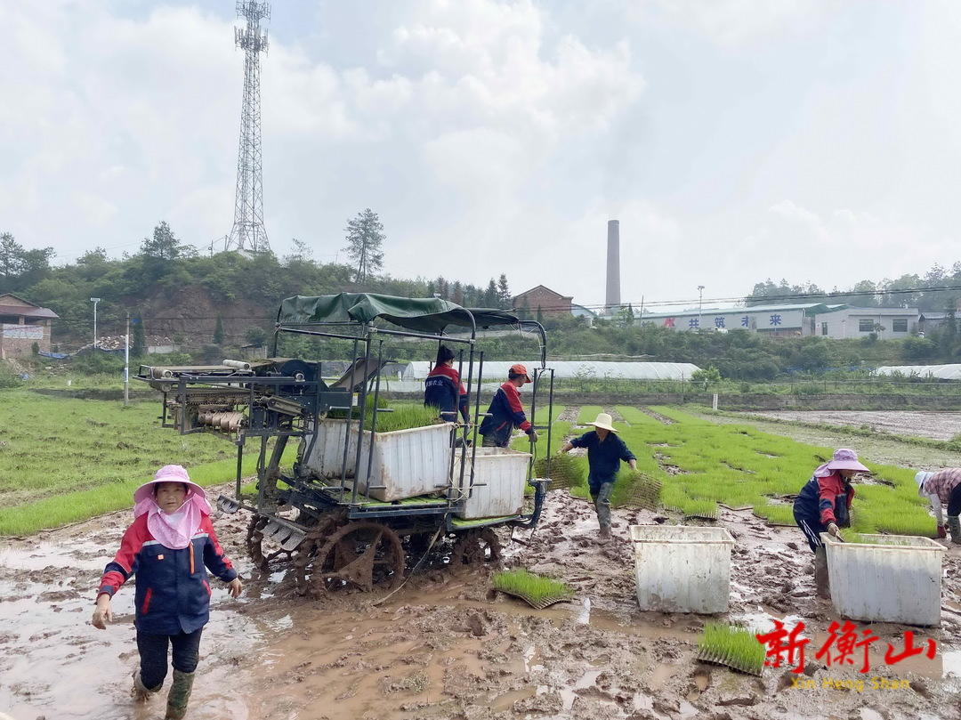 在柘塘村的早稻秧田里,沐宸农机合作社负责人王辉煌正带领着村民,将一筐筐嫩绿的秧苗搬上抛秧机。随后,王辉煌和他的妻子一人驾驶一台抛秧机,开始了抛秧作业。