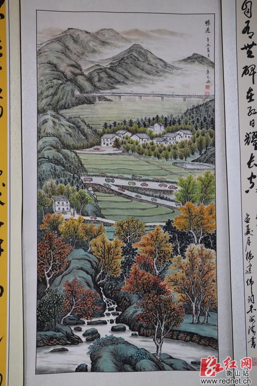 此次展出的80余幅书画作品,是由县诗词学会的诗词爱好者通过现场采风,以笔抒情创作的文稿,再由县书法家协会的书法家挥毫泼墨,书写装裱共同完成的,通过诗词+书法的形式歌颂我县交通事业取得的喜人成就。