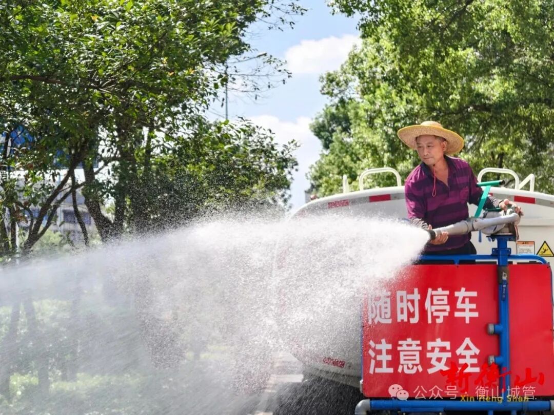近日,记者走进工业园、开云大道、衡山大道等路段看到,绿化养护人员正拿着水管,将清凉的水流精准地洒向绿地花草,同时在主干道上,洒水车已经全面出动,进行大面积漫灌和喷洒,为我县苗木送上"解渴甘霖"。