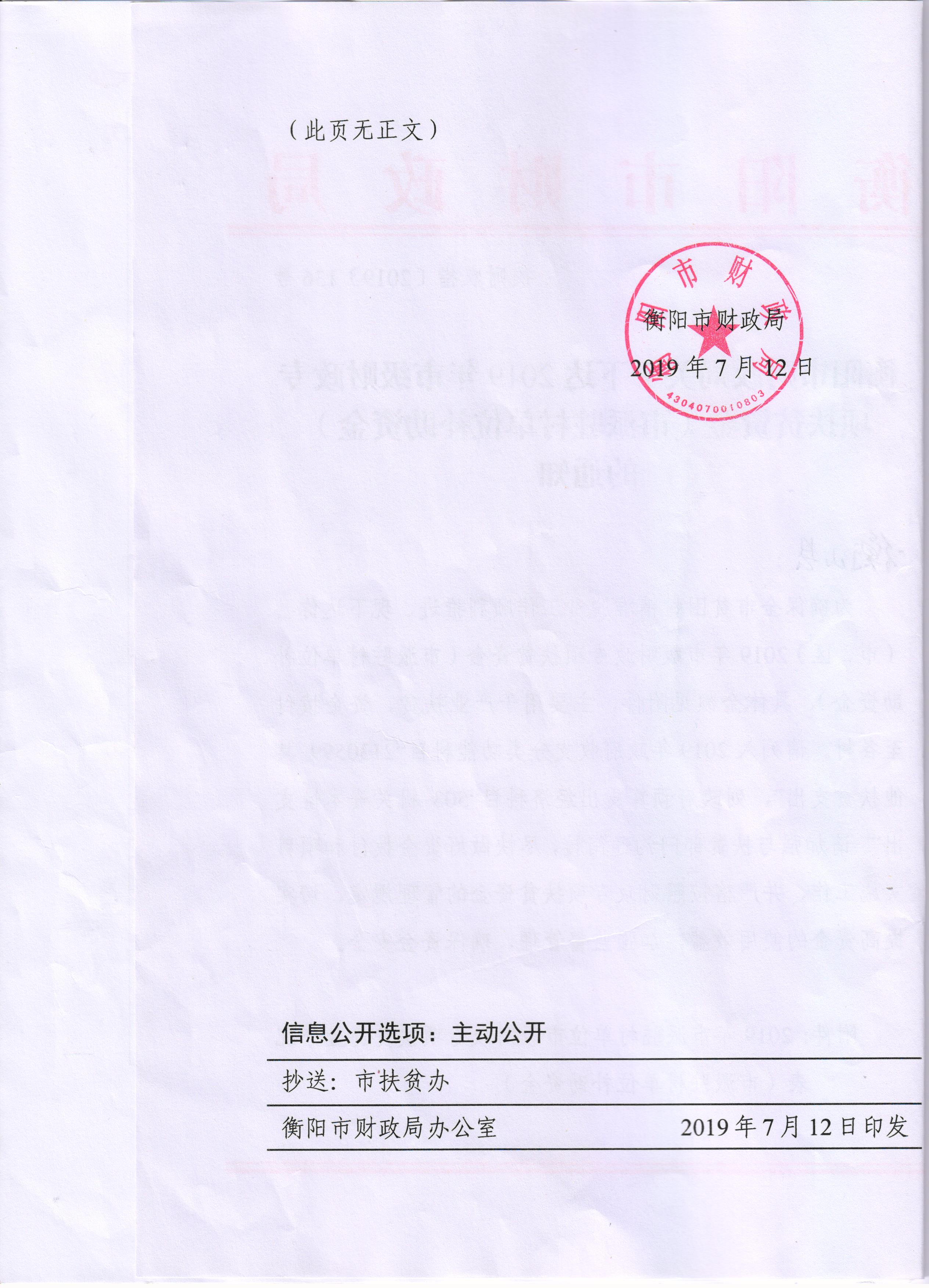 关于下达2019年市级专项扶贫资金(市派驻村单位补助资金)的通知