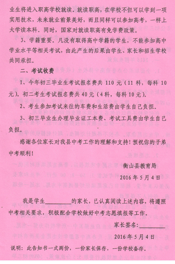 告初中毕业生家长书