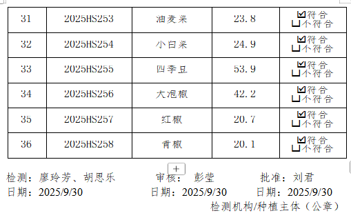 衡山县农产品质量安全检验检测中心 2025年9月30日