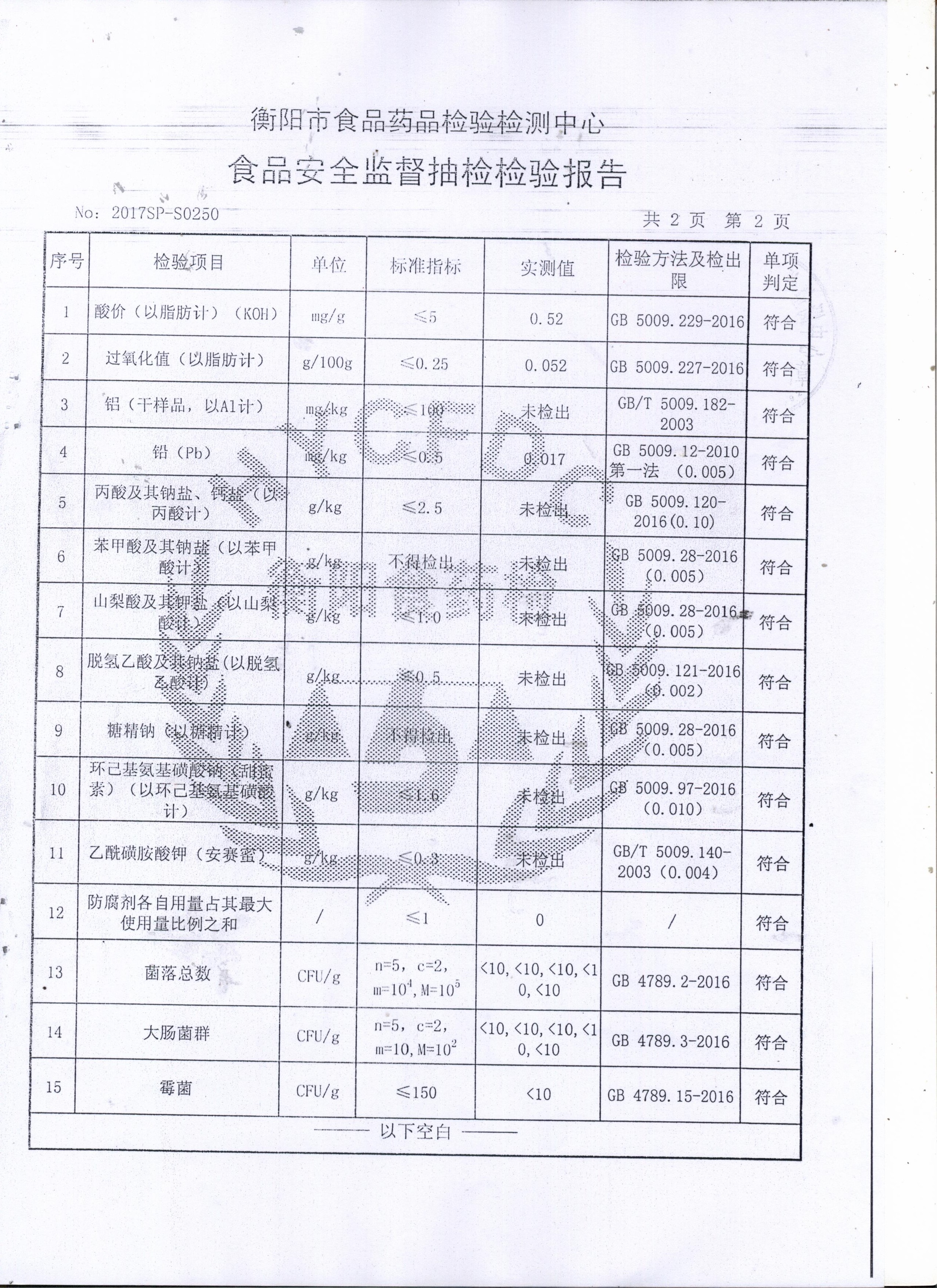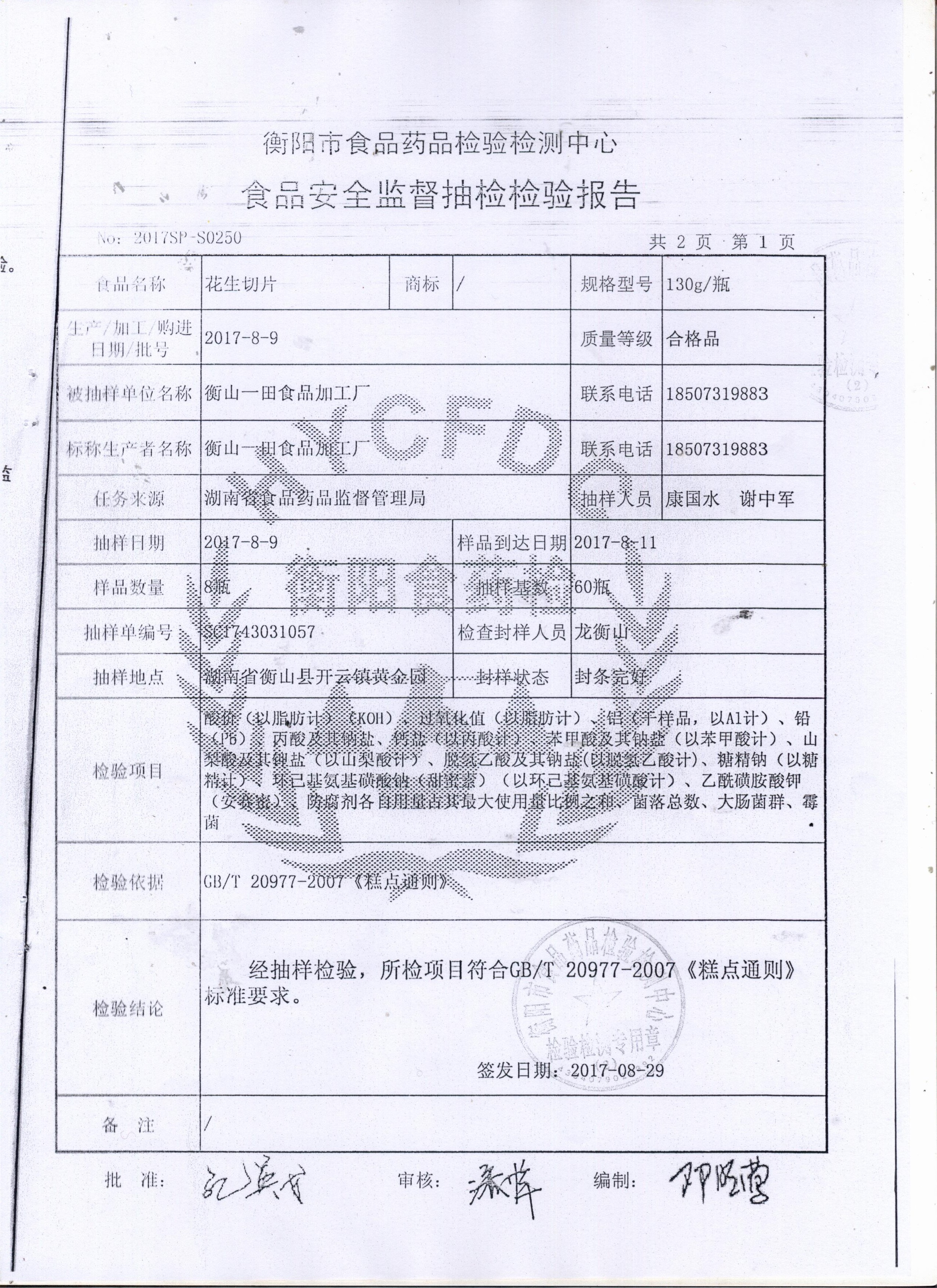 衡山一田食品加工厂检验报告