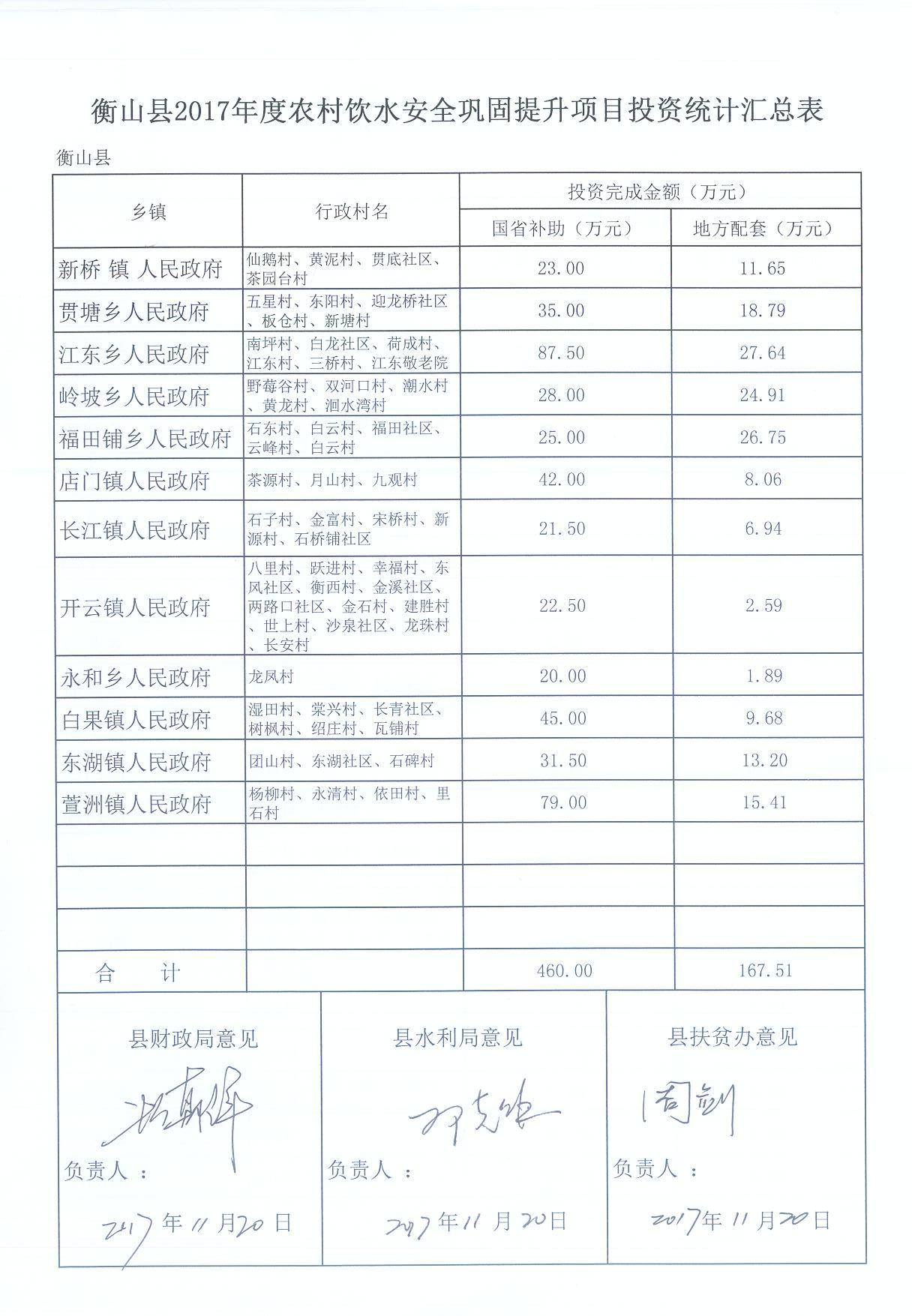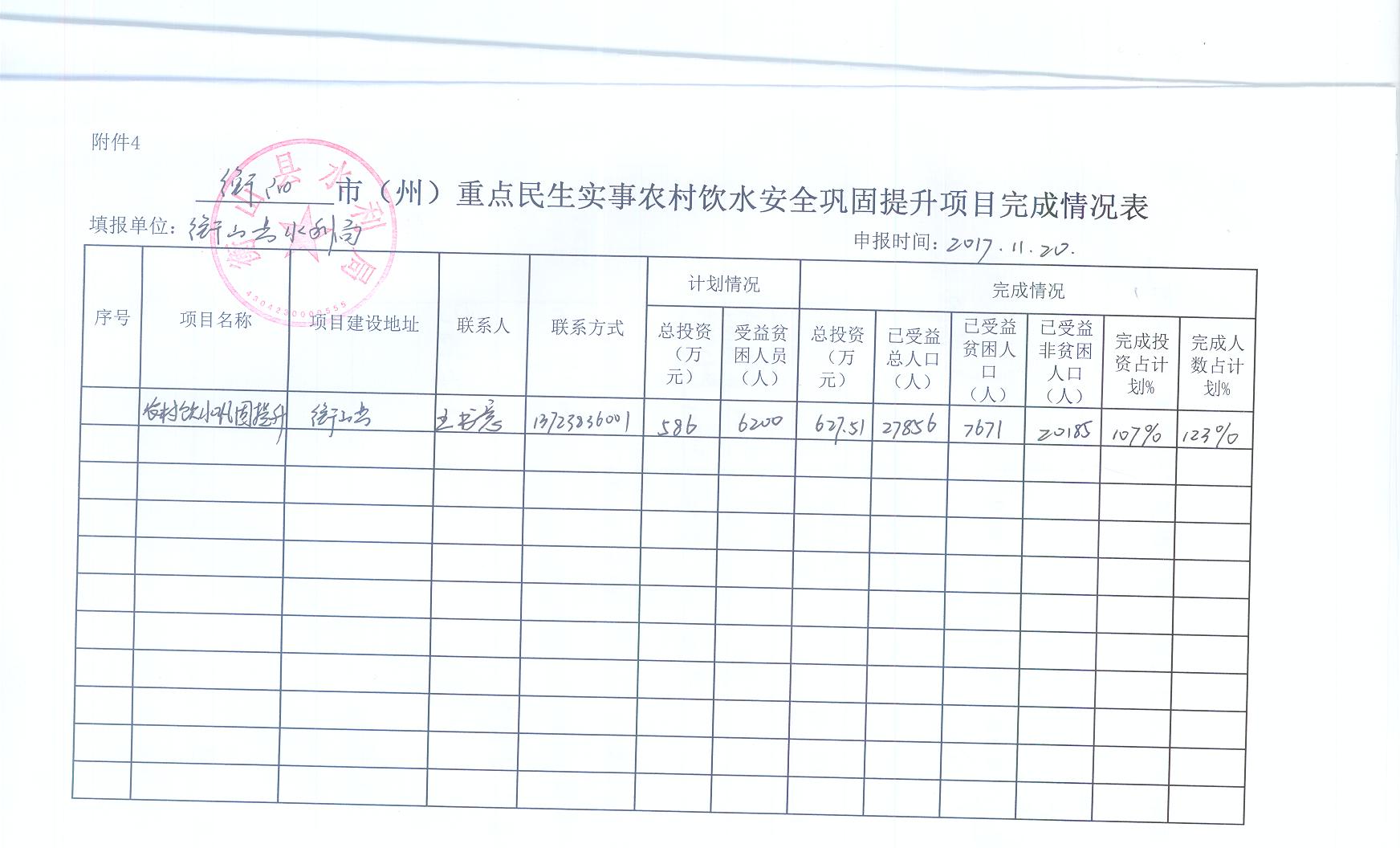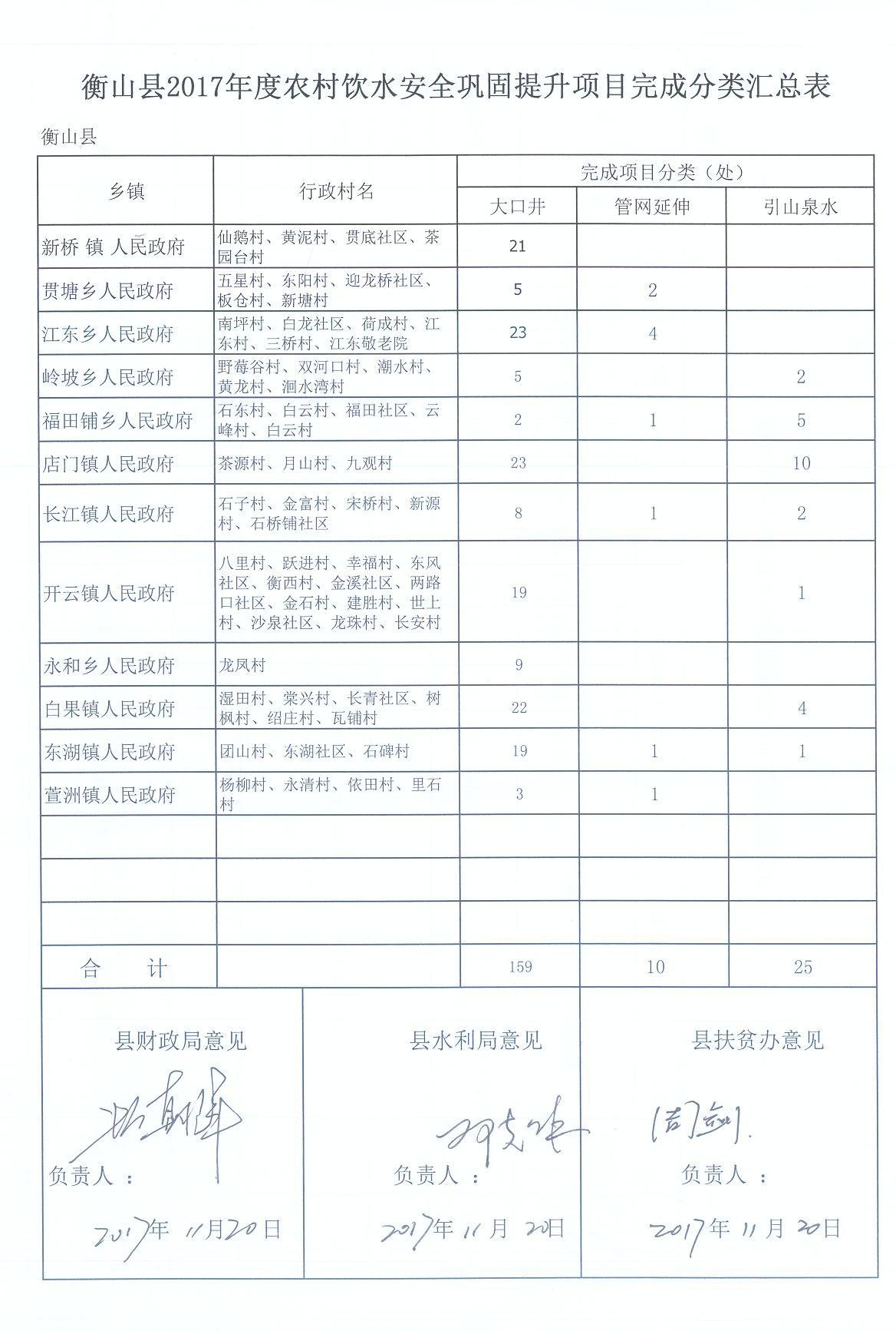2017年衡山县重点民生实事农村安全饮水巩固提升项目实施情况公示