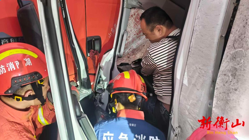 “我们到达现场之后,小货车驾驶员意识还是非常清楚的,因为是驾驶室相撞,他的腿部被卡住了出不来,需要我们帮他解救出来。”衡山县消防救援大队两路口消防救援站三级消防士周锦云告诉记者。