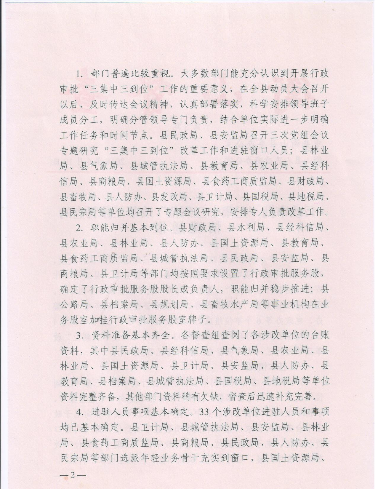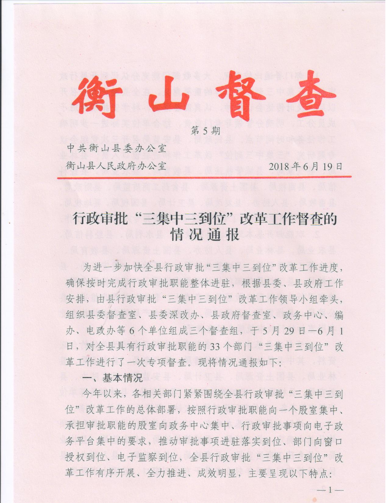 衡山督查第5期 行政审批“三集中三到位”改革工作督查的情况通报