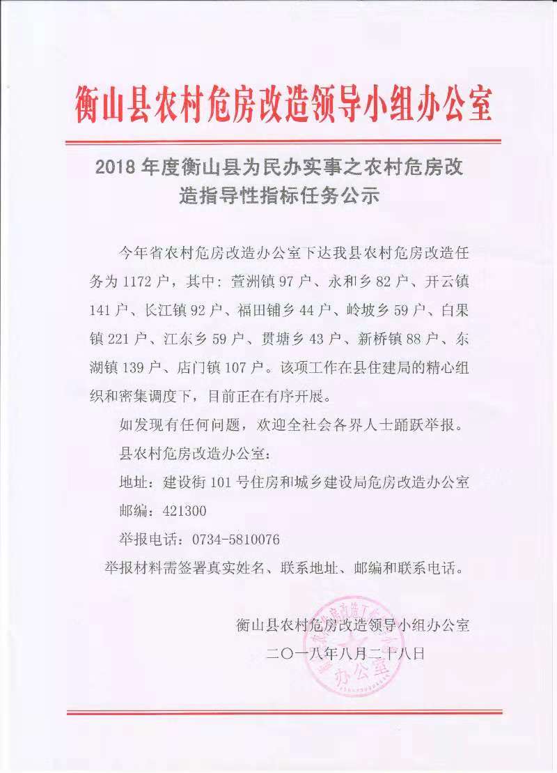 2018年衡山县为民办实事之农村危房改造指导性指标任务公示