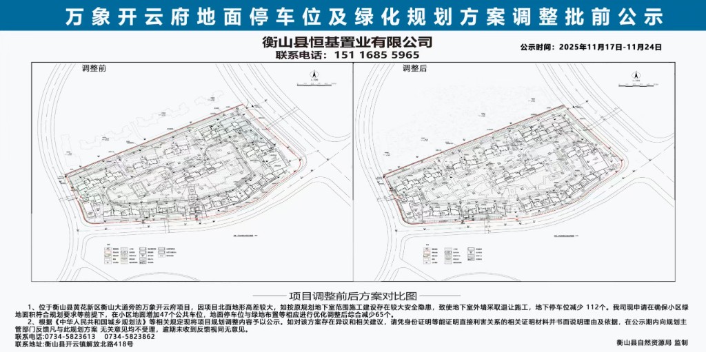 万象开云府地面停车位及绿化规划方案调整批前公示