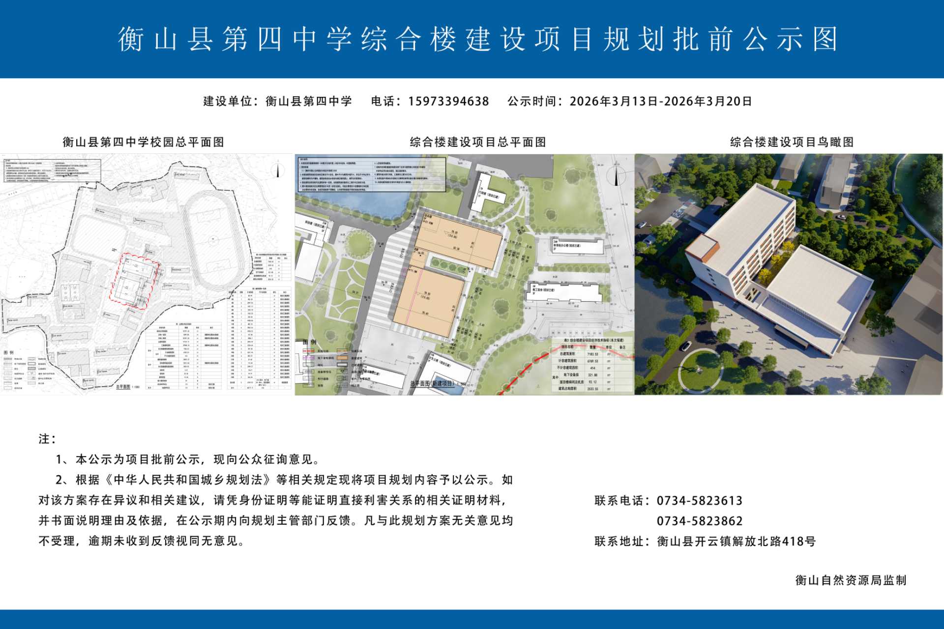 衡山县第四中学综合楼建设项目规划批前公示