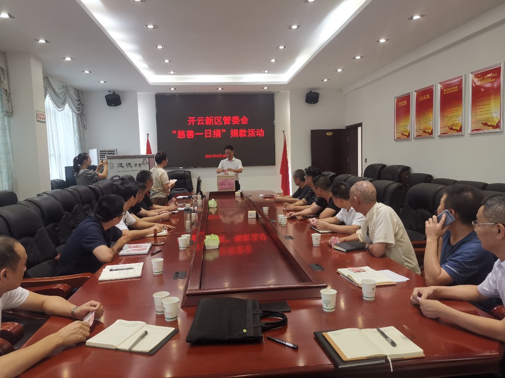 为弘扬中华民族扶贫济困、助人为乐的传统美德,9月16日,开云新区管委会在四楼会议室,组织开展“慈善一日捐”捐款活动,单位全体干部职工积极响应县委、县政府的号召,捧出火热的爱心,奉献无限的爱意,热情参与到慈善一日捐的活动中来,踊跃捐赠个人一天的工资收入,用自己的实际行动来帮助需要帮助的群众,为构建和谐社会贡献一份力量。