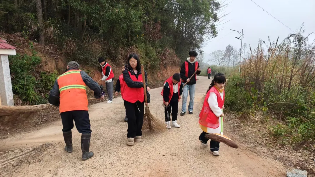 活动现场,红艳艳的“志愿者”马甲成为田间地头的第一抹新年红。老党员带头示范,拿着扫帚、铁锹教着孩子们劳动工具的省力方式,一边清理道路两侧枯枝落叶、沟渠淤泥与卫生死角,一边指导、协助沿途的村民规整柴草、农具和杂物,以言传身教的方式将洁净故土的担当传承到年轻学子的手中。青春少年活力满满,孩子们手持垃圾袋、垃圾夹,弯腰捡拾白色垃圾、分类清运杂物,用稚嫩双手扮靓家园,在劳动中树立环保意识、养成文明习惯。