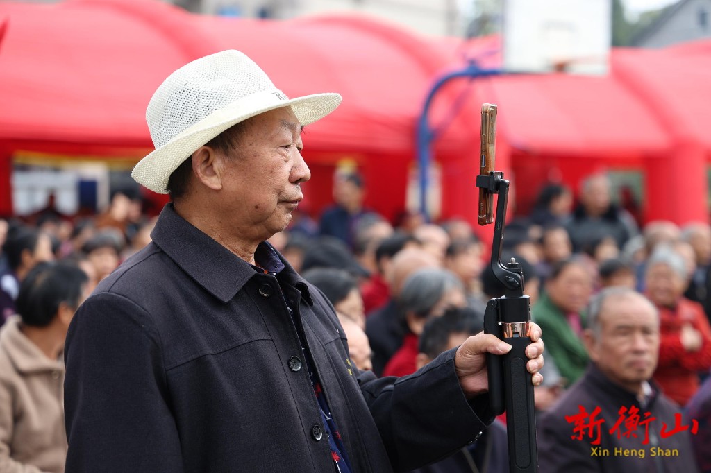 台下,老人们或搬来小板凳坐得满满当当,或站在后排踮脚观看,听到精彩处,纷纷跟着节奏轻轻哼唱,不时鼓掌叫好,有的还拿出手机记录下精彩瞬间。