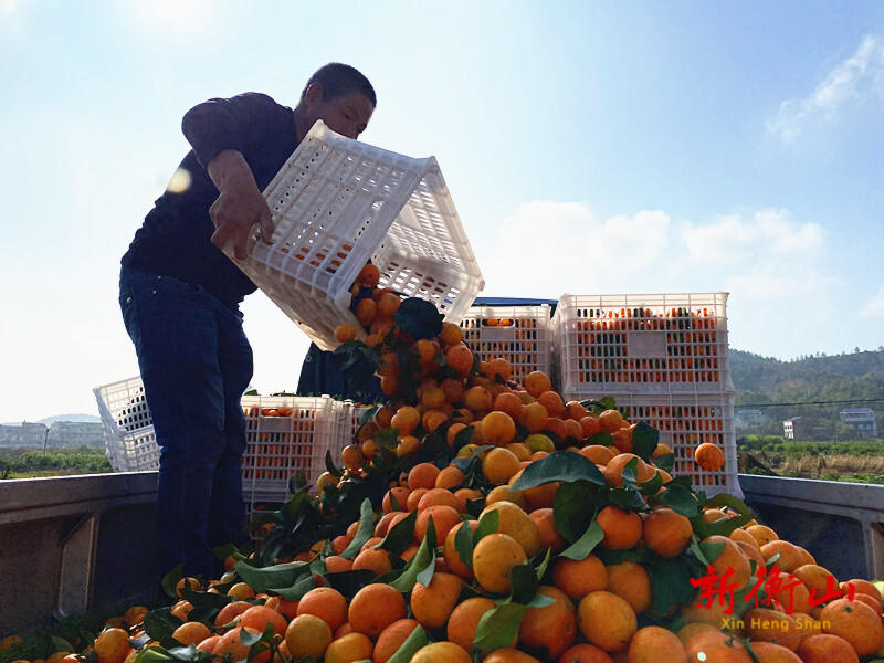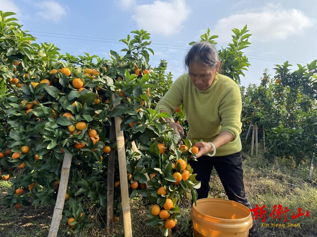 2022年,衡山红新生态农业开发有限公司的砂糖桔订单络绎不绝,公司请了十余名村民来帮忙采摘、装箱,一车车新鲜的砂糖桔将以最快的速度发往衡山县周边各地。