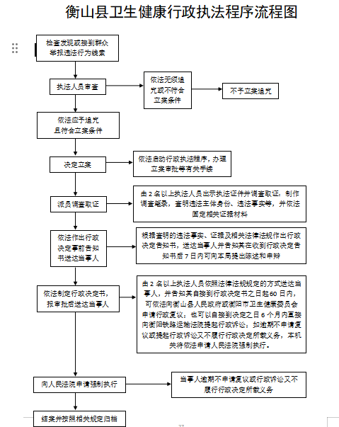 根据《中华人民共和国行政许可法》《中华人民共和国行政处罚法》《湖南省行政程序规定》等法律法规以及湖南省人民政府办公厅关于印发《湖南省全面推行行政执法公示制度、执法全过程记录制度、重大执法决定法制审核制度的实施方案》的通知(湘政办发〔2019〕23号)要求,现将衡山县卫生健康局行政执法主体和行政执法人员信息公示如下: